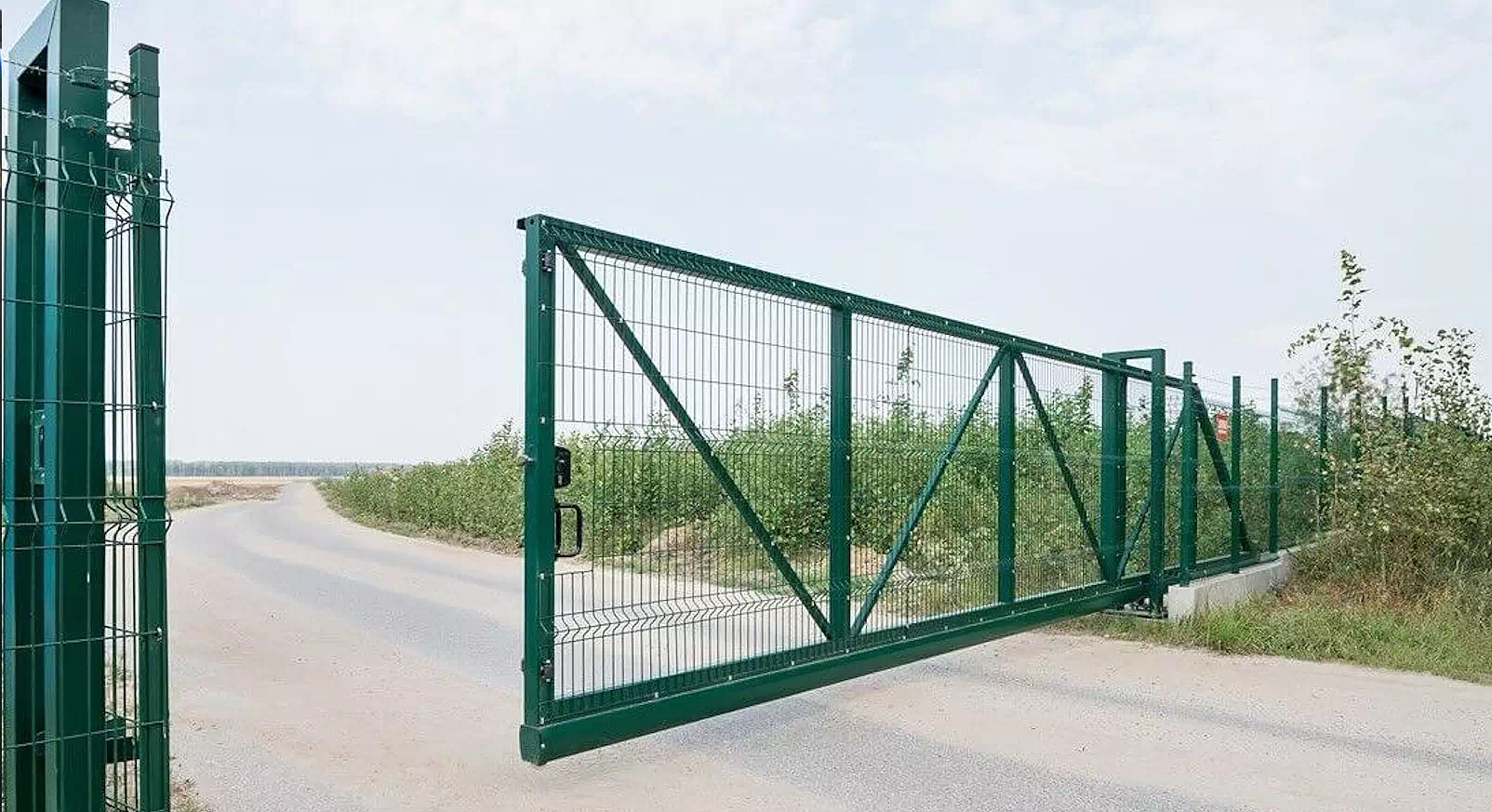 Калитка из профиля 40х40мм., потому что у сетчатых панелей нет никаких ветровых нагрузок и сама по себе 3д сетка не тяжелая. Из-за чего, укреплять ворота и калитки сверх норм не нужно, это просто необоснованное удорожание.